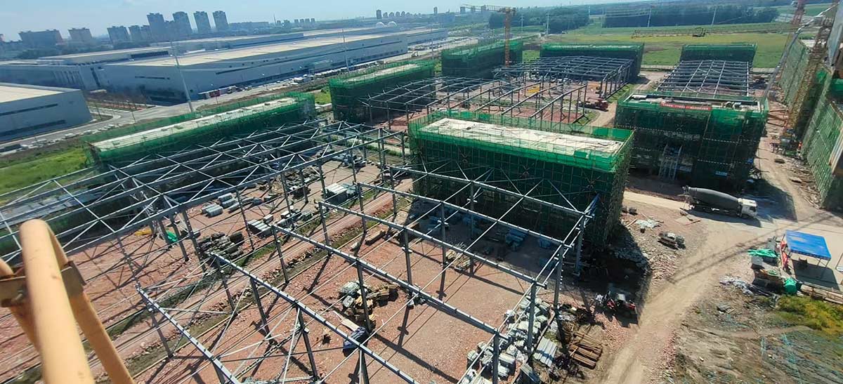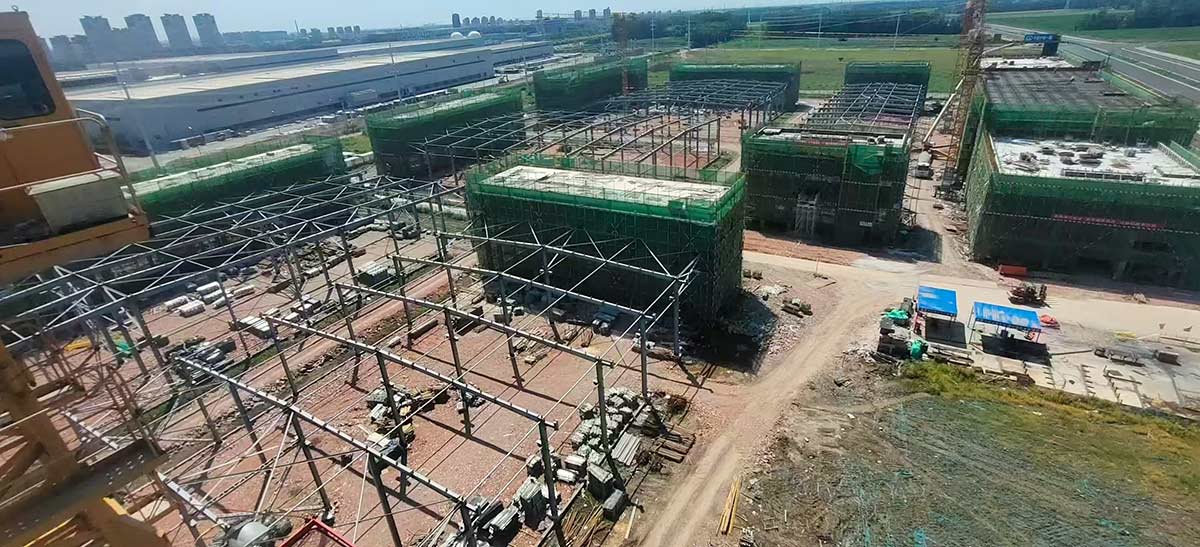 項目進(jìn)展:園區(qū)全部廠房已主體封頂。